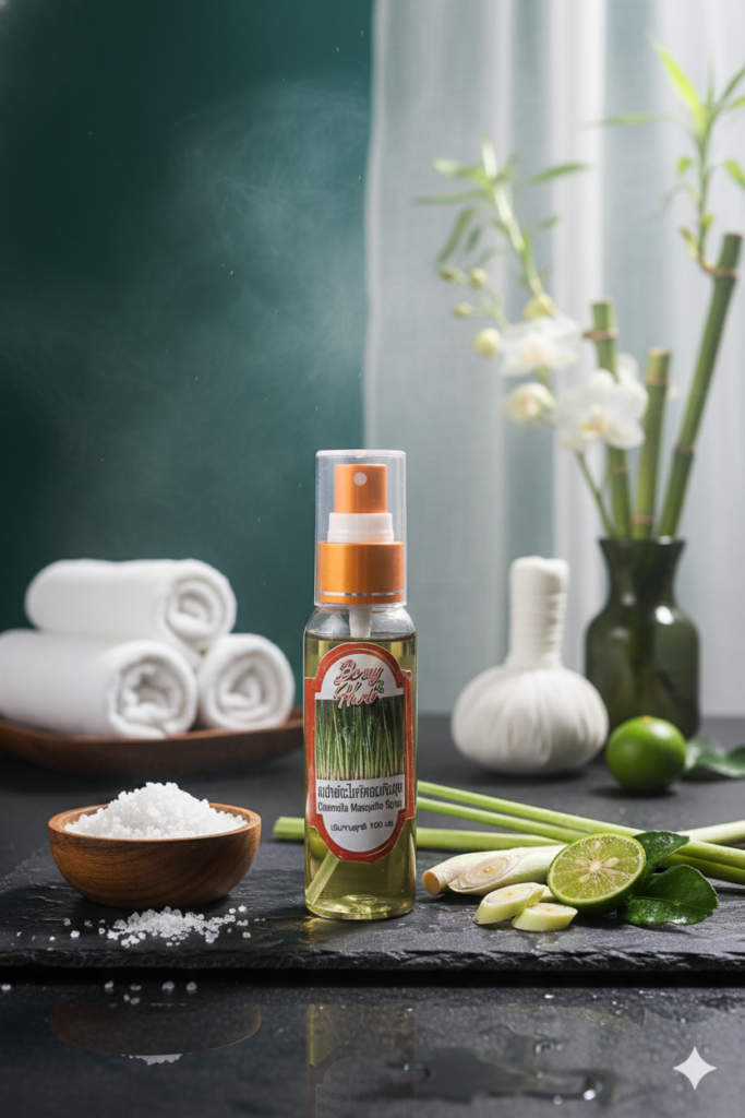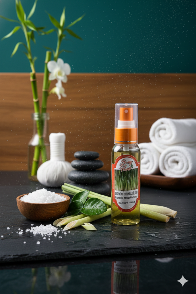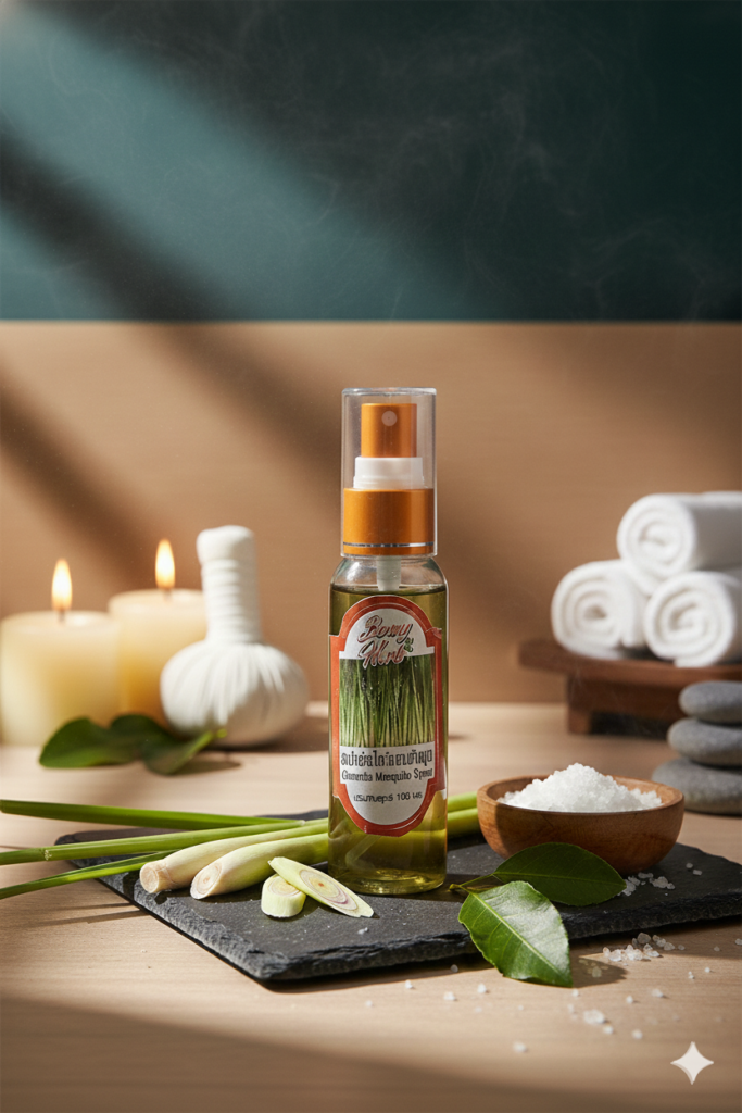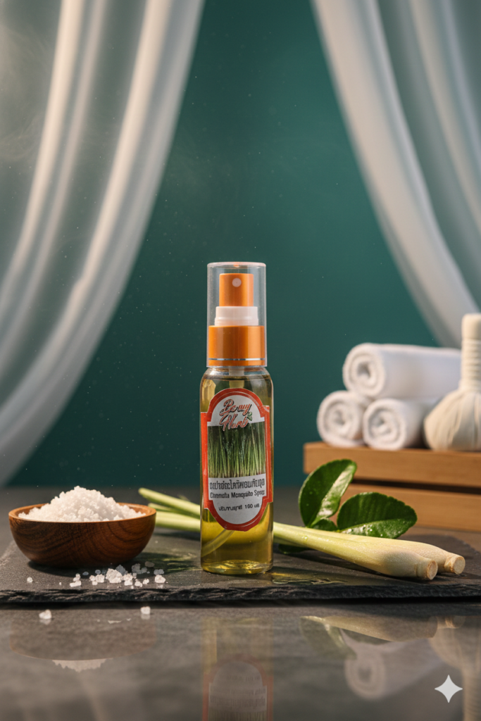 สเปรย์ตะไคร้หอมกันยุง ผลิตจากสารสกัดตะไคร้หอมที่มีกลิ่นหอมธรรมชาติ ช่วยไล่ยุงและแมลงรบกวน พร้อมให้ความรู้สึกสดชื่น อ่อนโยนต่อผิว เหมาะสำหรับใช้ในชีวิตประจำวันหรือทำกิจกรรมกลางแจ้ง