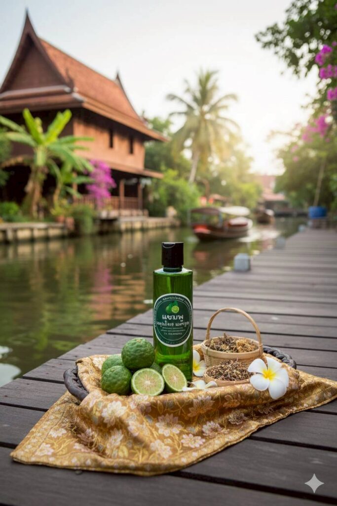เทแชมพูมะกรูดลงบนฝ่ามือ